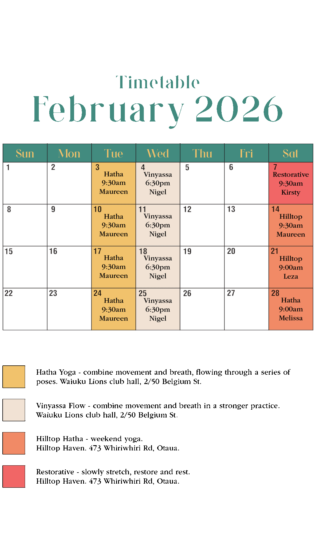 We're a collective of local yogi's, proudly teaching community classes here in Waiuku. Our classes are suitable for beginners and experienced yogis alike, we welcome everyone along!